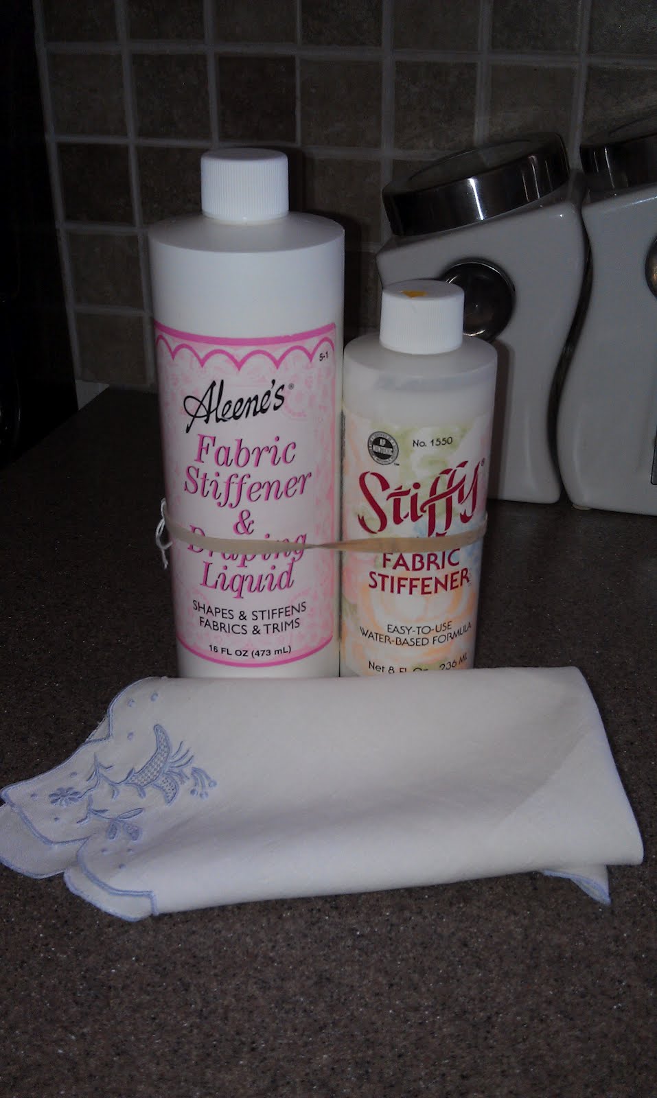 I wandered in and out of second hand stores this week with no idea of what to do. I couldn’t find anything that was even in the least little bit inspiring. That is until I wandered into the linen section and found these bottles of fabric stiffener. When I saw them I pictured the scene in “Christmas Vacation” when Clark finds his perfect Christmas tree. A light shines down from heaven and Clark looks like he has just seen the gates to heaven. I don’t mean to imply that finding fabric stiffener in a second hand shop is anywhere near as life altering as the perfect Christmas tree, but I was almost that excited to find my next project.